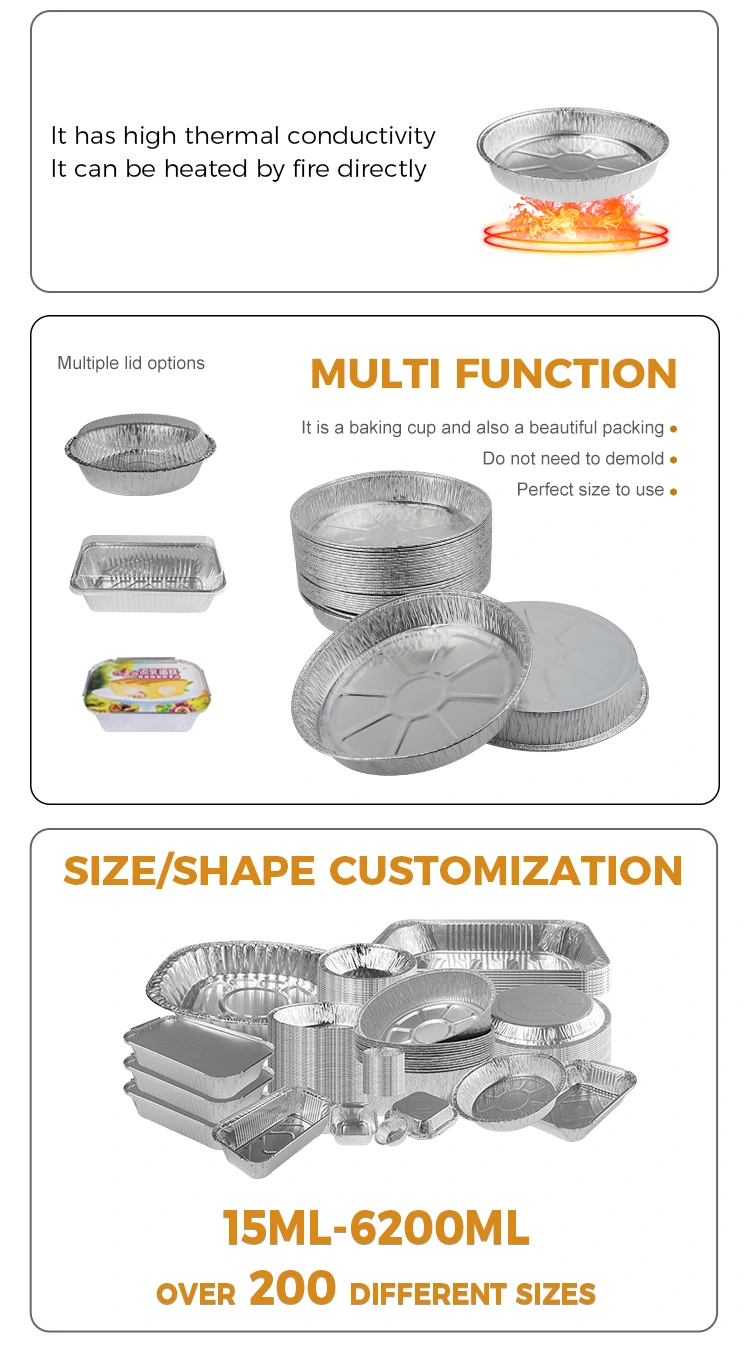 இந்த தயாரிப்பின் ட்ரெப்சாய்டல் வடிவம் அழகியலைச் சேர்ப்பது மட்டுமல்லாமல், அடுக்கி வைப்பதற்கும் சேமிப்பதற்கும் மிகவும் எளிதானது, சேமிப்பக இடத்தை திறம்பட சேமிக்கிறது. அதே நேரத்தில், இந்த வடிவமைப்பு உருப்படிகளை எடுப்பதை எளிதாக்குகிறது மற்றும் கள நடவடிக்கைகளின் போது எளிதில் நழுவாது, இது பயன்பாட்டின் பாதுகாப்பை பெரிதும் மேம்படுத்துகிறது. கூடுதலாக, 7 அங்குல சுருக்கமான பீஸ்ஸா பான் சில்வர் ஃபாயில் கொள்கலன் ஒரு இலகுரக வடிவமைப்பைக் கொண்டுள்ளது, இது வெளிப்புற பிக்னிக்ஸுக்கு சரியானதாக அமைகிறது. எந்த நேரத்திலும், எங்கும், வீட்டிலோ அல்லது வெளிப்புறத்திலோ, எந்தவொரு சந்தர்ப்பத்திற்கும் எளிதாக அதை உங்களுடன் எடுத்துச் செல்லலாம். வெளிப்புற செயல்பாடுகளை விரும்பும் நண்பர்களுக்கு வெளிப்புற சுற்றுலா, 7 அங்குல சுருக்கமான பீஸ்ஸா பிளேட் வெள்ளி அலுமினியத் தகடு கொள்கலன், இதை உணவை வைத்திருக்கப் பயன்படுத்துவது மட்டுமல்லாமல், நேரடியாக நிராகரிக்கப்படலாம் (சுற்றுச்சூழல் நட்பு அகற்றல் முறையைத் தேர்வுசெய்க), அழுக்கு மேஜைப் பாத்திரங்களை வீட்டிற்கு எடுத்துச் செல்ல வேண்டிய அவசியமில்லை, இது உயர் மற்றும் சுற்றுச்சூழல் நட்பு.