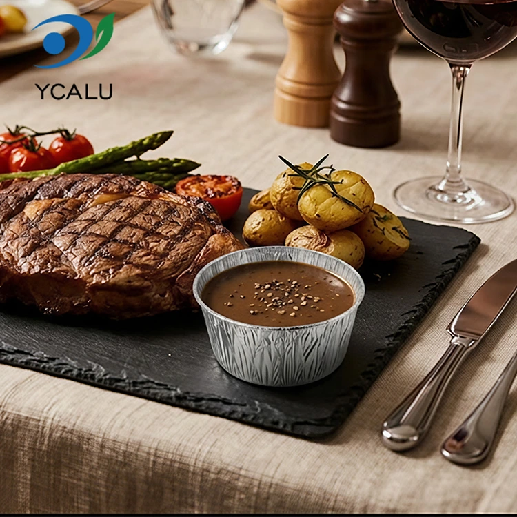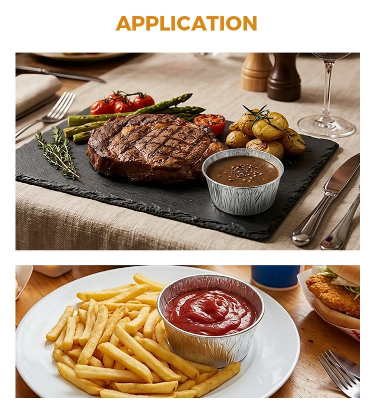 • செலவழிப்பு சுற்று சாஸ் சில்வர் அலுமினியம் ஃபாயில் உணவு கொள்கலன்கள்செலவழிப்பு சுற்று சாஸ் சில்வர் அலுமினியம் ஃபாயில் உணவு கொள்கலன்கள்