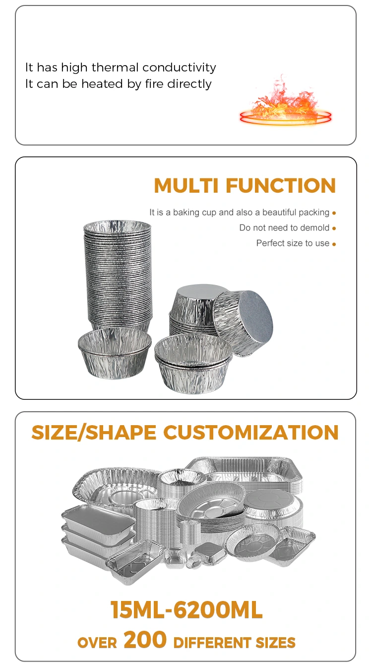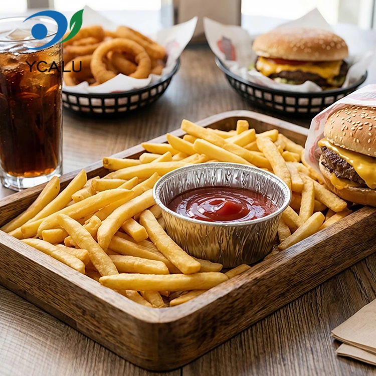 யுஞ்சு அலுமினியம் ஃபாயில் சப்ளையர் டிஸ்போசபிள் ரவுண்ட் சாஸ் ஏர் ஃப்ரையர் சில்வர் அலுமினிய ஃபாயில் கன்டெய்னர் உணவு தர அலுமினிய ஃபாயில் மெட்டீரியல், வாசனை இல்லை, ஹெவி மெட்டல் எச்சம் இல்லை, உணவு தொடர்பு தரநிலைகள், உயர் தூய்மை மற்றும் நிலையான இரசாயன பண்புகள் இணங்குகிறது. இது அமில சாஸ்களால் நிரப்பப்பட்டாலும், அதிக வெப்பநிலையில் சூடுபடுத்தப்பட்டாலும், அது தீங்கு விளைவிக்கும் பொருட்களை வெளியிடாது, மேலும் உணவுடன் நேரடியாக தொடர்பு கொள்ளும்போது நீங்கள் முற்றிலும் பாதுகாப்பாக உணரலாம். தயாரிப்பு FDA உணவு தர சான்றிதழில் தேர்ச்சி பெற்றுள்ளது மற்றும் FDA 21 CFR தொடர்பான தரநிலைகளை கண்டிப்பாக பின்பற்றுகிறது, தொழில்முறை இடம்பெயர்வு சோதனை மற்றும் ஹெவி மெட்டல் கண்டறிதலுக்குப் பிறகு, ஈயம் மற்றும் காட்மியம் போன்ற தீங்கு விளைவிக்கும் பொருட்களின் உள்ளடக்கம் பாதுகாப்பு வரம்பைக் காட்டிலும் மிகவும் குறைவாக உள்ளது, மேலும் தகுதிகள் முழுமையானவை. வீட்டு உபயோகமாக இருந்தாலும் சரி, வணிக உபயோகமாக இருந்தாலும் சரி, மன அமைதியுடன் தேர்வு செய்யலாம். இறைச்சிகளை மரைனேட் செய்வதற்கான சாஸ்கள், காய்கறிகளுக்கான சாலட் டிரஸ்ஸிங் மற்றும் பாலாடைகளை நனைக்க வினிகர் உணவுகளை பிரிக்க இதைப் பயன்படுத்தவும். பகுதிகள் வீணாகாமல் சரியாக இருக்கும். இது துர்நாற்றம் பரவுவதையும் தவிர்க்கலாம், மேலும் இது இடத்தை எடுத்துக் கொள்ளாமல் குளிர்சாதன பெட்டியில் அழகாக சேமிக்கப்படும். டேக்அவே வணிகர்கள் சாஸ்களை சேமித்து வைக்க பயன்படுத்துகின்றனர், அவை சீல் வைக்கப்பட்டு, கசிவு ஏற்படாதவாறு, வாடிக்கையாளர்களுக்கு சுத்தமாக வழங்கப்படுகின்றன. கெட்ச்அப், ஸ்வீட் சில்லி சாஸ் அல்லது கெட்டியான எள் சாஸ் எதுவாக இருந்தாலும், உணவு கசிவு மற்றும் அசுத்தம் போன்ற சங்கடங்கள் இருக்காது. வெளிப்புற பிக்னிக் மற்றும் கேம்பிங் ஆகியவற்றிற்கு கூட, நீங்கள் சிலவற்றை உங்களுடன் கொண்டு வரலாம் மற்றும் டிப்பிங் சாஸ்களை வைத்திருக்க அதைப் பயன்படுத்தலாம். இது ஒளி மற்றும் இடத்தை எடுத்துக் கொள்ளாது. பயன்பாட்டிற்குப் பிறகு நீங்கள் அதை நேரடியாக தூக்கி எறியலாம். நீங்கள் அழுக்கு கொள்கலன்களை வீட்டிற்கு எடுத்துச் செல்ல வேண்டியதில்லை. இது முக்கியமாக எளிமை மற்றும் பிரச்சனையற்றது.