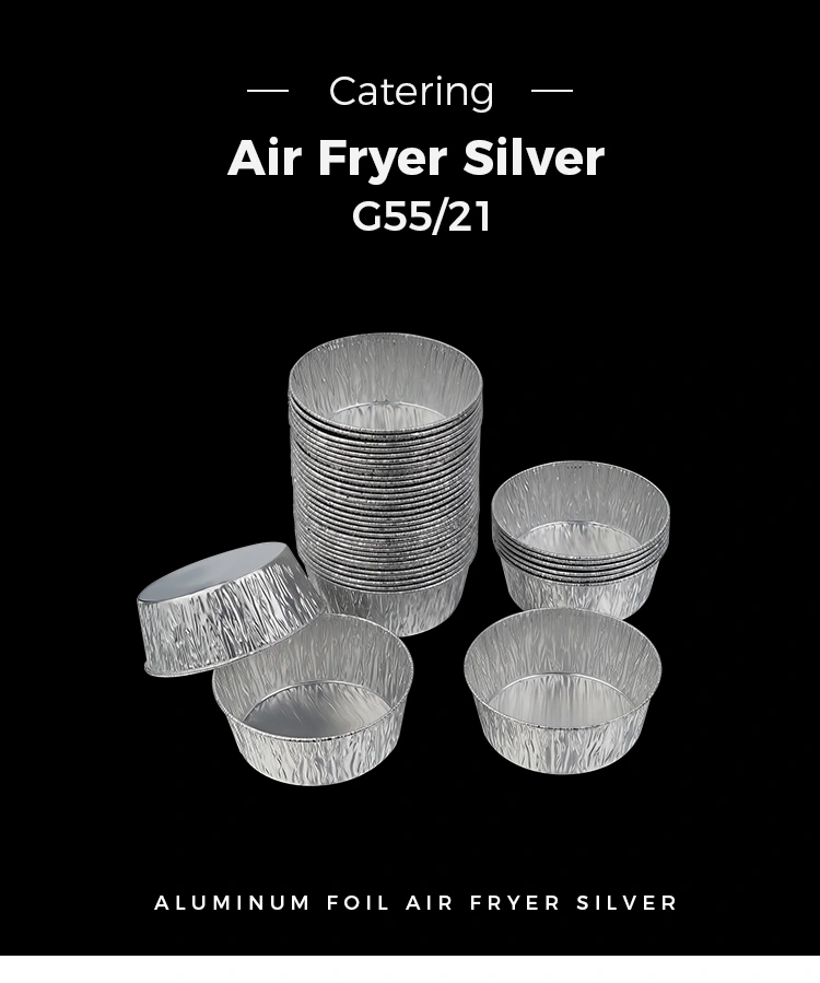 டிஸ்போசபிள் சில்வர் ரவுண்ட் டிப் ஏர் பிரையர் சில்வர் அலுமினிய ஃபாயில் உணவுக் கொள்கலன்கள்