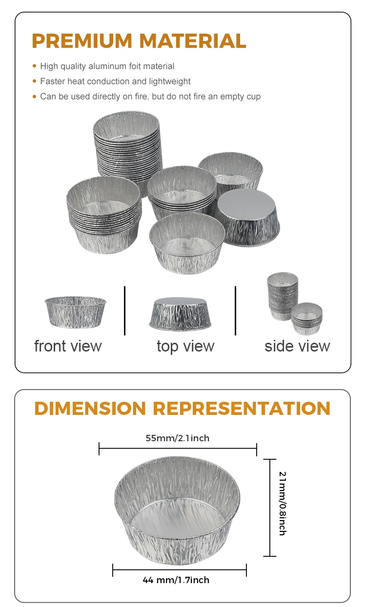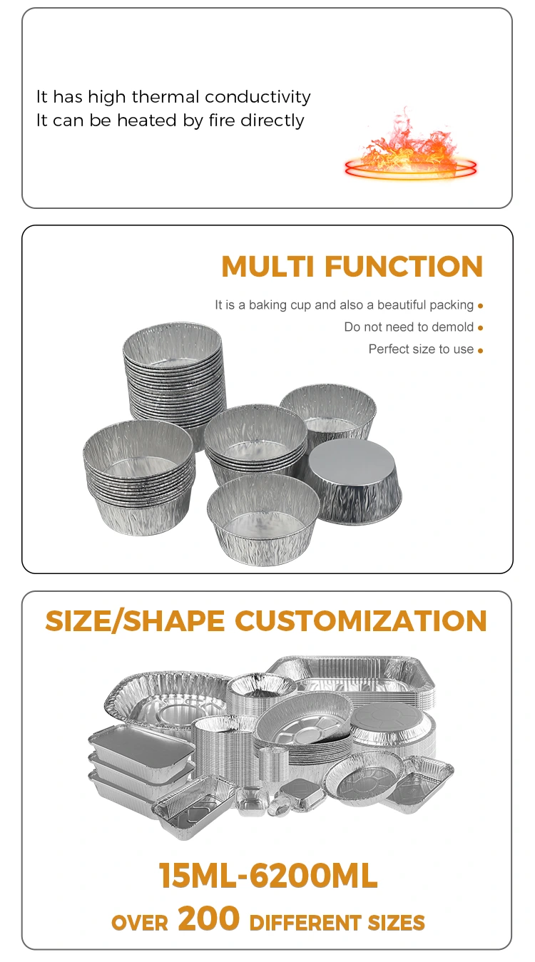 யுஞ்சு அலுமினியத் தகடு சப்ளையர்களின் செலவழிப்பு வெள்ளி சுற்று டிப்பிங் ஏர் பிரையர் சில்வர் அலுமினியப் ஃபாயில் கொள்கலன் உணவு தர தடிமனான அலுமினியத் தாளால் ஆனது. இது பாதுகாப்பானது, வாசனை இல்லை, தீங்கு விளைவிக்கும் மழைப்பொழிவு இல்லை. இது அனைத்து வகையான டிப்பிங் பொருட்களையும் நேரடியாக தொடர்பு கொள்ளலாம். இந்த சிறிய அலுமினிய ஃபாயில் கொள்கலனை அடுக்கி வைக்கலாம், இடத்தை சேமிக்கவும், சிதைக்கப்படாமல், கசிவு ஏற்படாது. வெள்ளி அலுமினியத் தகடு ஒரு சீரான அமைப்பு மற்றும் சிறந்த வெப்ப கடத்துத்திறன் கொண்டது. உணவகங்கள், கஃபேக்கள், குடும்பக் கூட்டங்கள் போன்றவற்றில் இதைப் பயன்படுத்தலாம். ஏர் பிரையர்களில் ஸ்நாக்ஸ் போன்றவற்றில் இதைப் பயன்படுத்தலாம். இதில் கெட்டியான சாஸ்கள் மற்றும் எண்ணெய் டிப்பிங் சாஸ்கள் இருந்தாலும், அது கசியாது. இது மேஜை மற்றும் சமையலறை பாத்திரங்களை சுத்தமாகவும் நேர்த்தியாகவும் வைத்திருக்கும். படலத்தின் விளக்கக்காட்சி பல்வேறு காட்சிகளில் எளிமையாகவும் அழகாகவும் உள்ளது. வெள்ளி தோற்றத்தை பல்வேறு இரவு உணவு தட்டுகளுடன் பொருத்தலாம்.