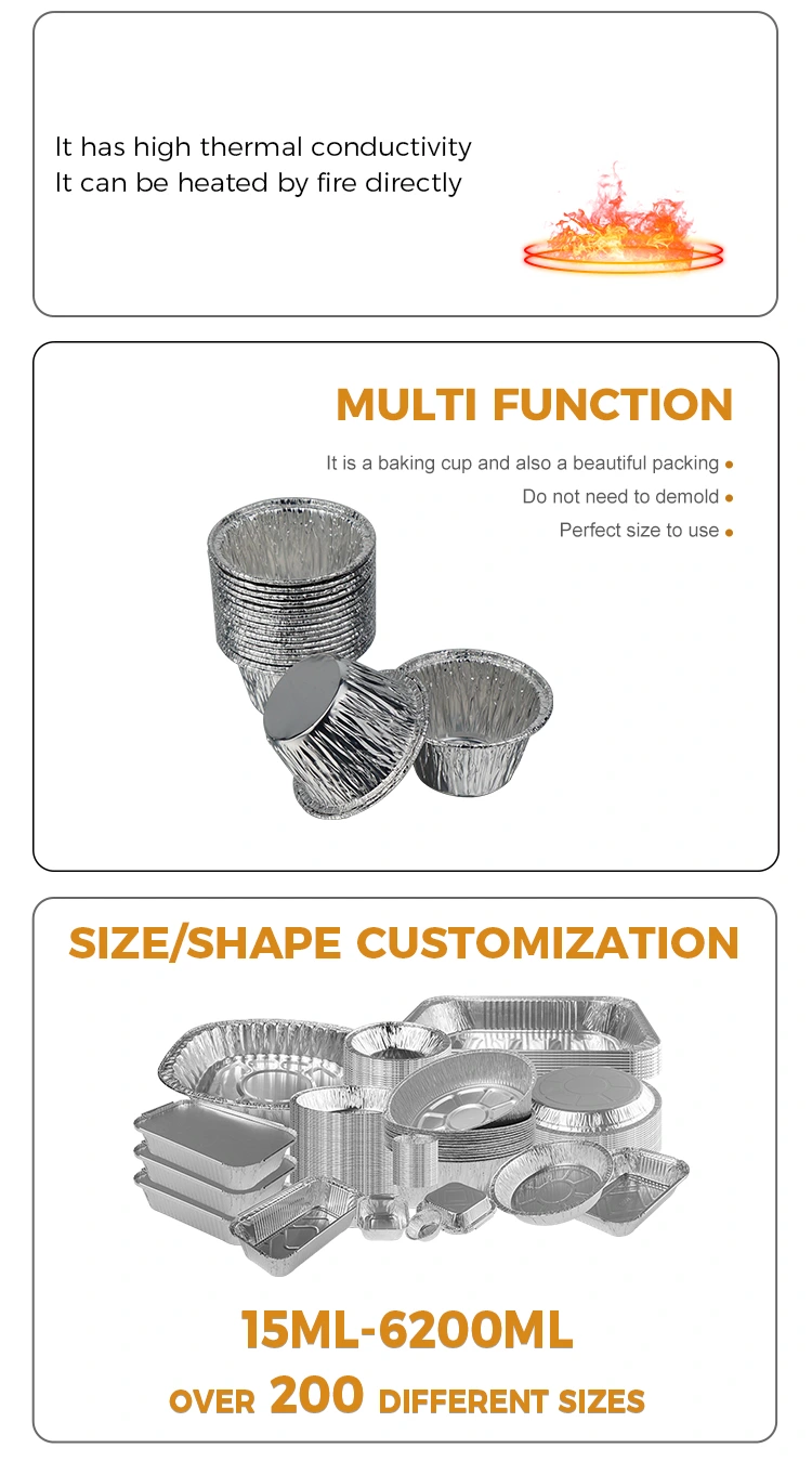 வீட்டு அடுப்புப் பயன்பாடுகளுக்கு, நீங்கள் அலுமினியம் ஃபாயில் கோப்பைகளைப் பயன்படுத்தி மினி கேக்குகள் மற்றும் ஆரோக்கியமான பேக் செய்யப்பட்ட புட்டுகளை உங்கள் குழந்தைகள் விரும்பிச் செய்யலாம். பேக்கிங் ட்ரேயை சுத்தம் செய்ய வேண்டிய அவசியமில்லை, உணவுக்குப் பிறகு சுத்தம் செய்வது எளிது.