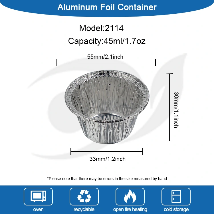 யுஞ்சு அலுமினியம் ஃபாயில் உற்பத்தியாளரின் ஒரு முறை சிறிய சுற்று கேக் ஏர் பிரையர் சில்வர் அலுமினியம் ஃபாயில் கொள்கலன் 8011-O உணவு தர அலுமினியப் படலத்தைப் பயன்படுத்துகிறது, இது US FDA உணவுத் தொடர்பு பாதுகாப்புச் சான்றிதழைப் பெற்றுள்ளது மற்றும் EU SGS உணவுத் தொடர்புப் பொருள் பாதுகாப்புத் தரங்களுக்கு இணங்குகிறது. தொழில்முறை சோதனைக்குப் பிறகு, அது எந்த நாற்றமும் இல்லை மற்றும் தீங்கு விளைவிக்கும் எச்சங்கள் இல்லை. இது அனைத்து வகையான உணவுகளையும் நேரடியாக தொடர்பு கொள்ளலாம். சிதைப்பது அல்லது உடைப்பது எளிதானது அல்ல. இது திறம்பட கசிவு-எதிர்ப்பு மற்றும் எதிர்ப்பு. இது கேக் மாவு, புட்டு திரவம், சாஸ் போன்ற திரவ பொருட்களை நேரடியாக வைத்திருக்கும். வெளிப்புற சுருட்டப்பட்ட விளிம்பு வடிவமைப்பு கீறலுக்கு எதிரானது, உங்கள் கைகளை சொறிவதற்கான அபாயத்தை குறைக்கிறது. வெப்பநிலை எதிர்ப்பு வரம்பு -40℃ முதல் 220℃ வரை இருக்கும், மேலும் இது ஏர் பிரையர்கள், ஓவன்கள், ஸ்டீமர்கள் மற்றும் மைக்ரோவேவ் அடுப்புகளுக்கு (நடுத்தர-குறைந்த வெப்பம்) பொருத்தப்படலாம். மினி கேக்குகள் மற்றும் முட்டை டார்ட்களை சுட ஏர் பிரையரில் நேரடியாக வைக்கலாம், மேலும் பலவிதமான சமையல் மற்றும் பேக்கிங் தேவைகளை பூர்த்தி செய்த பிறகு, உறைந்த பொருட்களை நேரடியாக சூடாக்கவும் பயன்படுத்தலாம்.