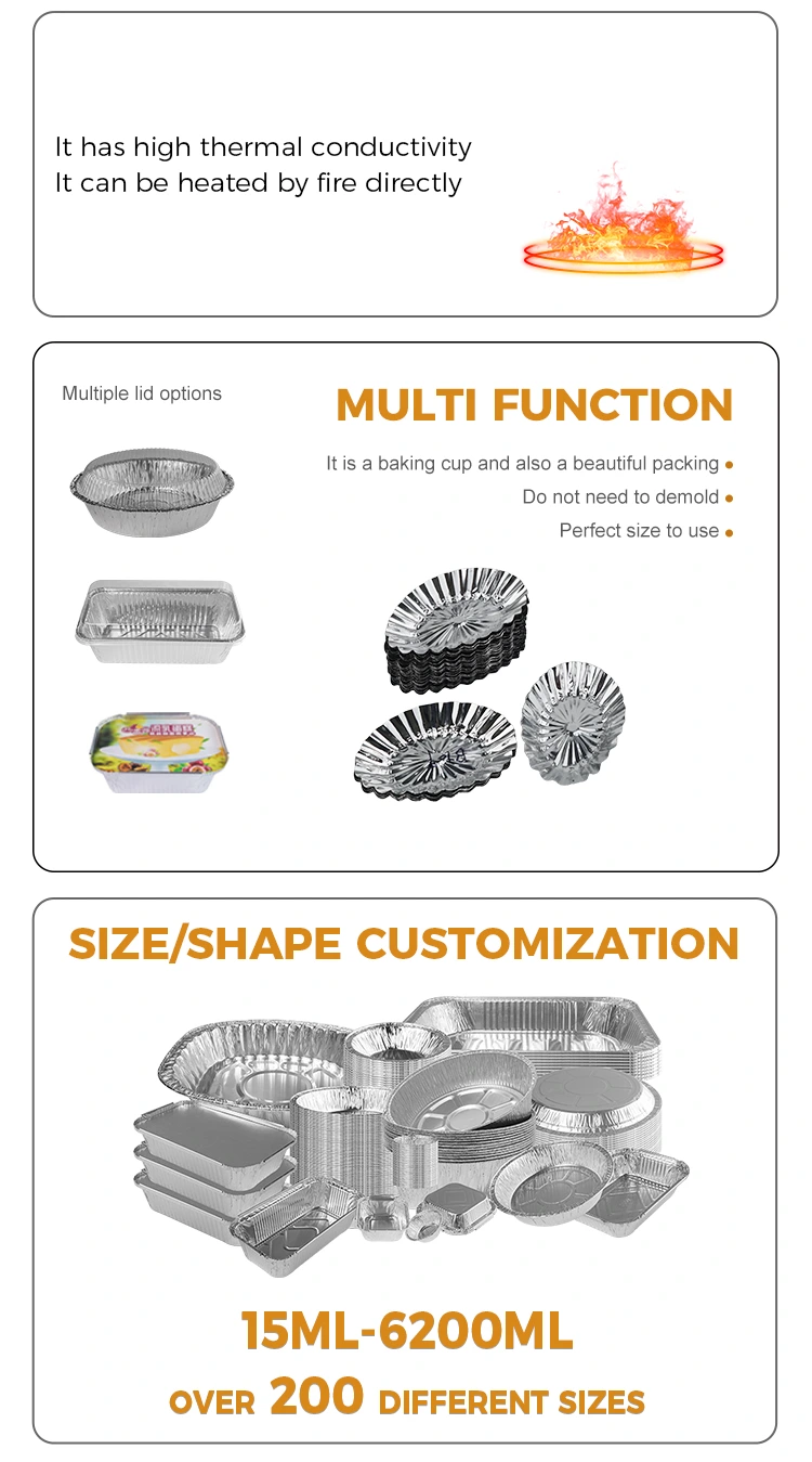 யங்கு அலுமினியத் தகடு ஓவல் லேஸ் கஸ்டார்ட் டார்ட் சில்வர் அலுமினியத் தகடு உணவு கொள்கலன் பேக்கிங்கிற்கு ஒரு நல்ல பங்காளியாகும், இது ஒரு அச்சு மற்றும் ஒரு பேக்கேஜிங். இது தடிமனான மற்றும் கடினமான பொருளால் ஆனது, இது சிதைப்பது எளிதானது அல்ல மற்றும் வலுவான அழுத்த எதிர்ப்பைக் கொண்டுள்ளது, எனவே நீங்கள் பானையை கழுவுவதில் உள்ள சிக்கலுக்கு விடைபெற்று பானையை எளிதாகப் பாதுகாக்கலாம். கிரீஸை தனிமைப்படுத்தவும், பயன்பாட்டிற்குப் பிறகு கழுவ வேண்டிய அவசியமில்லை, மென்மையான அடிப்பகுதி எரிச்சலூட்டுவது மற்றும் கீழே ஒட்டிக்கொள்வது எளிதல்ல, உணவில் ஒட்டாது, சமைக்க எளிதானது. கீழே மென்மையானது, இதனால் நீங்கள் அதை அதிக மன அமைதியுடன் பயன்படுத்தலாம், அதிக வெப்பநிலையில் பயன்படுத்தும்போது அதை வெளியிட எளிதானது, முடிக்கப்பட்ட தயாரிப்பு முடிந்ததும் அச்சுகளை வெளியிடுவது எளிது, கீழே ஒட்டாது, வடிவத்தை சேதப்படுத்தாது. தடிமனான மற்றும் கடினமான பொருள், வலுவான அழுத்தம் எதிர்ப்பு, பானைகளை கழுவுவதில் உள்ள சிக்கலுக்கு விடைபெறுங்கள், பானையை எளிதில் பாதுகாக்கவும். கிரீஸை தனிமைப்படுத்தவும், பயன்பாட்டிற்குப் பிறகு கழுவ வேண்டிய அவசியமில்லை, மென்மையான அடிப்பகுதி எரிச்சலூட்டுவது மற்றும் கீழே ஒட்டிக்கொள்வது எளிதல்ல, உணவில் ஒட்டாது, சமைக்க எளிதானது. கீழே மென்மையானது, இது -20 ° C முதல் 300 ° C வரை தாங்கும், அதை ஒரு திறந்த சுடர் மீது சூடாக்கலாம், மேலும் அச்சு சமமாக சூடாகிறது.