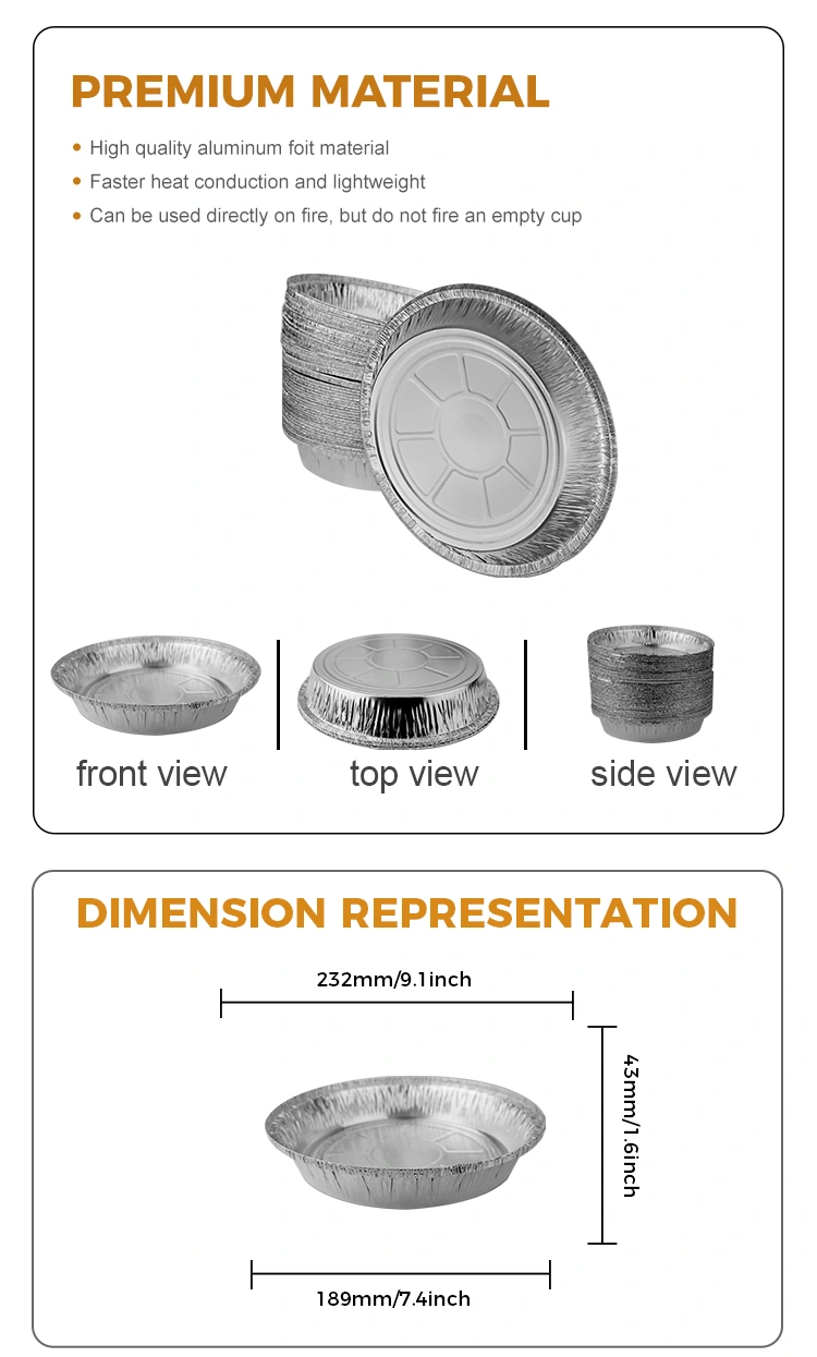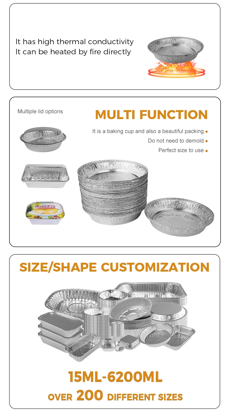 யுன்ச்சு அலுமினியத் தகடு சப்ளையர் மொத்த சுற்று ஏர் பிரையர் அடுப்பு வெள்ளி அலுமினியத் தகடு கொள்கலன்கள், வெள்ளி அலுமினியத் தகடு உணவு தரப் பொருள் சான்றிதழ், பொருள் தடிமனாகிவிட்டது, உணவு பாதுகாப்பு மற்றும் மன அமைதியுடன் நேரடி தொடர்பு, உணவு நேரடியாக உணவு சுடலாம், எளிமையானது மற்றும் பயன்படுத்த வசதியானது, அதிக வெப்பநிலை மற்றும் அதிக வெப்பநிலை, முதலியன, -20 ° C ~ 250 ° C ஐ ஒட்டவோ அல்லது உடைக்கவோ முடியாது, தடிமனான உயர்தர பொருட்கள், உணவு தர சுற்றுச்சூழல் பாதுகாப்பு மற்றும் மாசு இல்லாதது ஆகியவற்றைத் தேர்வுசெய்க, அதிக உறுதியைப் பயன்படுத்துங்கள். ரவுண்ட் ஏர் பிரையர் அடுப்பு சில்வர் அலுமினியத் தகடு கொள்கலன்கள் உணவகங்கள், கேண்டீன் கேட்டரிங், சங்கிலி கடைகள், குளிரூட்டப்பட்ட உணவு, டேக்அவே போன்ற காட்சிகளுக்கு ஏற்றவை. மொத்த அல்லது சில்லறை பயன்பாட்டிற்காக, இந்த பேக்கிங் பான் உங்களை மூடிமறைத்துள்ளது. பேக்கிங் தட்டில் ஒரு குறிப்பிட்ட சுமை தாங்கும் திறன் மற்றும் ஆயுள் உள்ளது, மேலும் அடுக்கி வைக்கும்போது கூட அதன் வடிவத்தை பராமரிக்க முடியும், மேலும் போக்குவரத்தின் போது சிதைப்பது எளிதல்ல. பயனர் அனுபவத்தை மேலும் மேம்படுத்த, பயனர்கள் அலுமினியத் தகடு இமைகள் மற்றும் முழுமையாக வெளிப்படையான செல்லப்பிராணி இமைகளுடன் பயன்படுத்தவும் தேர்வு செய்யலாம்.
