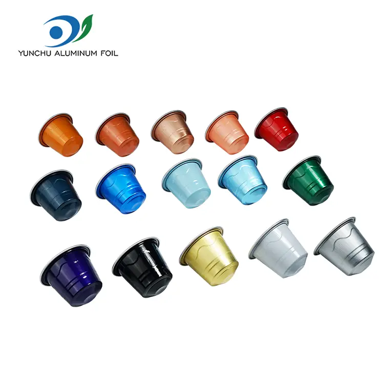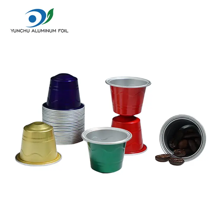 சீனா யுஞ்சு அலுமினியத் தகடு தொழிற்சாலை தயாரித்த கூம்பு சிலிகான்-சீல்-இலவச வெற்று காபி காப்ஸ்யூல் உணவு தர 8011-0 அலுமினியத் தகடு பொருட்களால் ஆனது மற்றும் சுற்றுச்சூழல் பாதுகாப்பு மற்றும் உணவு தர தொழில்நுட்ப தரங்களை பூர்த்தி செய்கிறது. இது ஜெர்மன் ஈஆர்பி சான்றிதழ், ஐரோப்பிய ஒன்றிய எஸ்ஜிஎஸ் சான்றிதழ் மற்றும் ஐஎஸ்ஓ 9001 தர மேலாண்மை அமைப்பு சான்றிதழ் ஆகியவற்றைப் பெற்றுள்ளது, மேலும் வெப்ப-சீல் அலுமினியத் தகடு இமைகளை வழங்குகிறது, அவை வெப்பத்திற்குப் பிறகு முத்திரையிட எளிதானவை மற்றும் வலுவான பொருந்தக்கூடிய தன்மையைக் கொண்டுள்ளன, சந்தையில் பெரும்பாலான காபி இயந்திரங்களுடன் இணக்கமானது. YUNCHU பூசப்பட்ட அலுமினியத் தகடுகளால் செய்யப்பட்ட காபி காப்ஸ்யூல்களை உருவாக்க முடியும், மேலும் காபி காப்ஸ்யூல்கள் பொறிக்கப்பட்ட அலுமினியத் தகடு மூலம் தயாரிக்கப்படுகின்றன, இது நல்ல சீல் மற்றும் சிறந்த தடை பண்புகளைக் கொண்டுள்ளது, இது மாசு மற்றும் சுவை இழப்பை திறம்பட தடுக்கிறது.