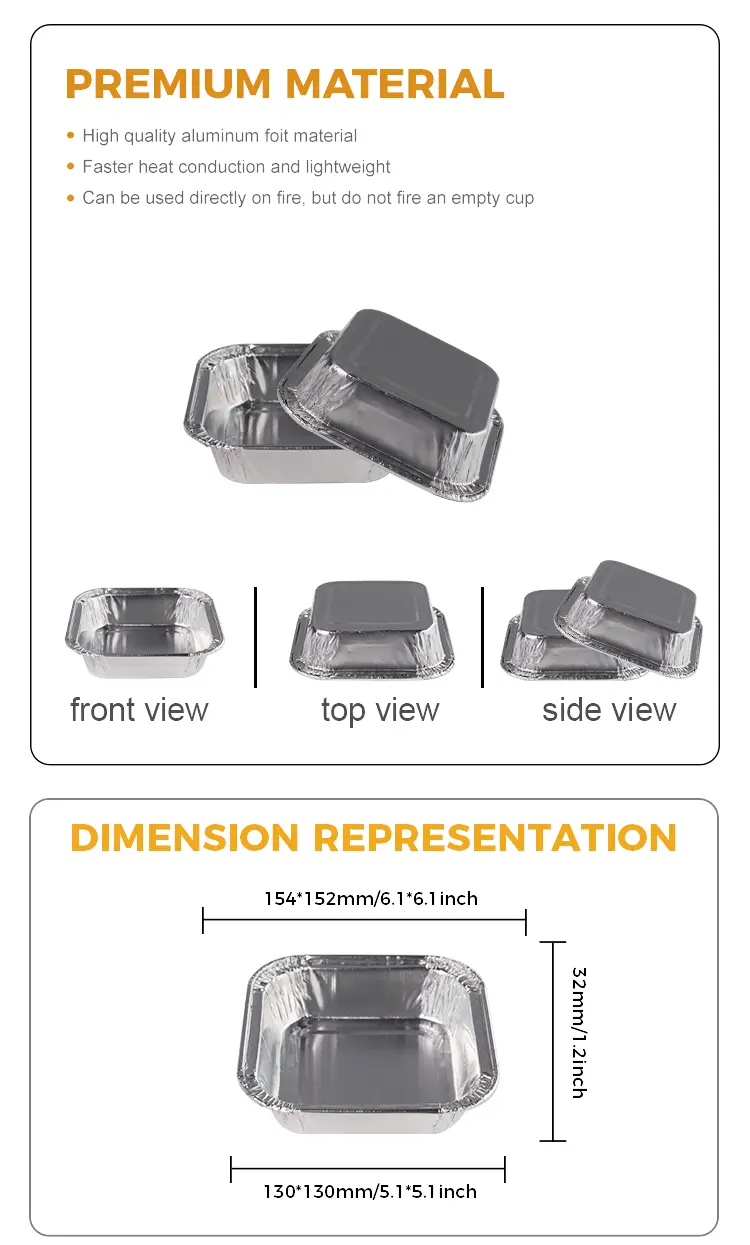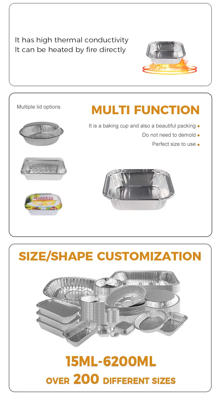 யுன்ச்சு அலுமினியத் தகடு சப்ளையர் சதுர கேக் ஏர் பிரையர் வெள்ளி அலுமினியத் தகடு கன்டெய்னர்ஸ்கானும் பல்வேறு காட்சிகளில் பரவலாகப் பயன்படுத்தப்பட வேண்டும்: அடுப்பு பேக்கிங், ஏர் பிரையர், திறந்த சுடர் வெப்பமாக்கல், நீராவி நீராவி மற்றும் பிற உபகரணங்கள் சீரான வெப்பக் கடத்தலைப் பயன்படுத்துகின்றன, அதே நேரத்தில் சீரான வெப்பம் ஒட்டுதல் அல்லாத கூட்டை அல்ல, அலுமினலால் பயன்படுத்தப்படுவதைத் தடுக்கும், முதலியன, சிறிய கேக்குகளை சுட, வீட்டில் தயிர், ஜெல்லி புட்டு, வேகவைத்த முட்டை, கடல் உணவு மற்றும் பிற உணவுகள், கீழ் குழிவான மற்றும் குவிந்த வடிவமைப்பு, சீட்டு அல்லாத பாத்திரத்தை வகிக்க, முழு சுருண்ட விளிம்பு வடிவமைப்பை ஒரு செல்லப்பிராணியுடன் முழுமையாக வெளிப்படையான மூடி மூலம் உணவின் வெப்பநிலை மற்றும் சுவையை பூட்ட பயன்படுத்தலாம்.