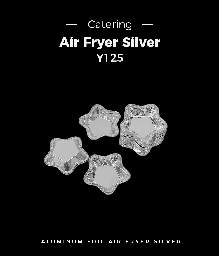 நட்சத்திர வடிவ அலுமினியத் தகடு புளிப்புக் கோப்பைகள் வெள்ளி அலுமினியத் தகடுகளால் ஆனவை மற்றும் உயர்-வெப்பநிலை எதிர்ப்பைக் கொண்டுள்ளன, அவை -20°C முதல் 300°C வரை நிலையானதாக இருக்கும். அவை பேக்கிங் மற்றும் ஏர் பிரையர் பயன்பாட்டிற்கு ஏற்றவை, மேலும் சாதனத்தின் உள் சுவர்களில் சேதம் ஏற்படாமல் தடுக்கலாம். அவை களைந்துவிடும்.