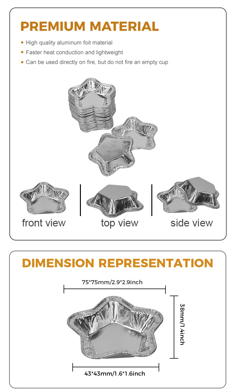 அலுமினிய ஃபாயில் உணவுக் கொள்கலன் பேக்கிங்கிற்கான நட்சத்திர வடிவ அலுமினிய ஃபாயில் டார்ட் கப்